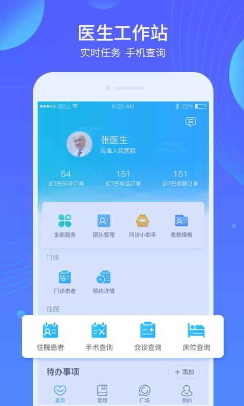 烏海人民醫(yī)院-醫(yī)生端是將醫(yī)院信息系統(tǒng)整合延伸到手機,形成一個高效、實時、動態(tài)的醫(yī)療信息交互管理平臺,致力于為醫(yī)生提供無時間空間限制的醫(yī)療管理環(huán)境,優(yōu)化日常工作管理流程,從而提升醫(yī)療工作效率。