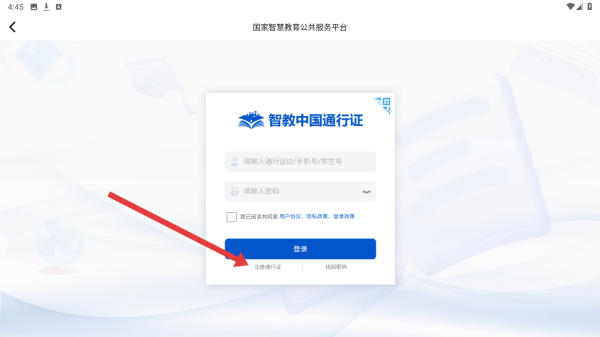 2、在國家智慧教育公共服務(wù)平臺登錄界面,點(diǎn)擊注冊賬號選項(xiàng),跳轉(zhuǎn)至手機(jī)號注冊頁面。