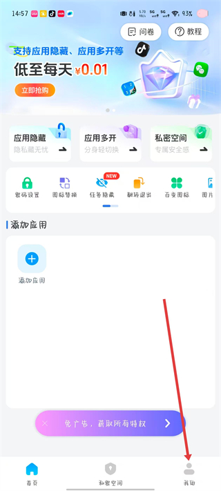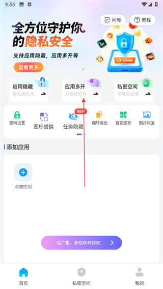 1、打開應(yīng)用隱藏計算器APP,點擊應(yīng)用多開選項。