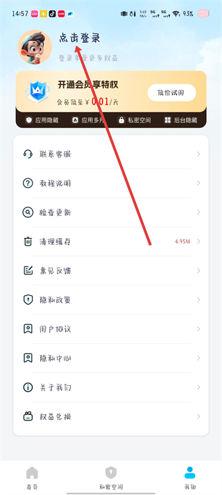 2、在個人中心頁面中,點擊點擊登錄區(qū)域,進入登錄界面。