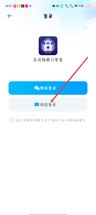 3、在登錄界面里,選擇短信登錄選項,進入手機號輸入頁面。