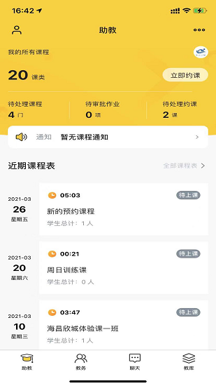 課鈴教學(xué)版官方版是一個教學(xué)輔助軟件,用戶下載app之后就可以使用助教系統(tǒng),從課程管理到作業(yè)約課都能幫助廣大教師減輕工作負(fù)擔(dān),還有專業(yè)的教務(wù)系統(tǒng)提醒,在線交流板塊方便教師之間、師生家長之間及時溝通。歡迎有需要的用戶下載課鈴教學(xué)版app看看辦吧。