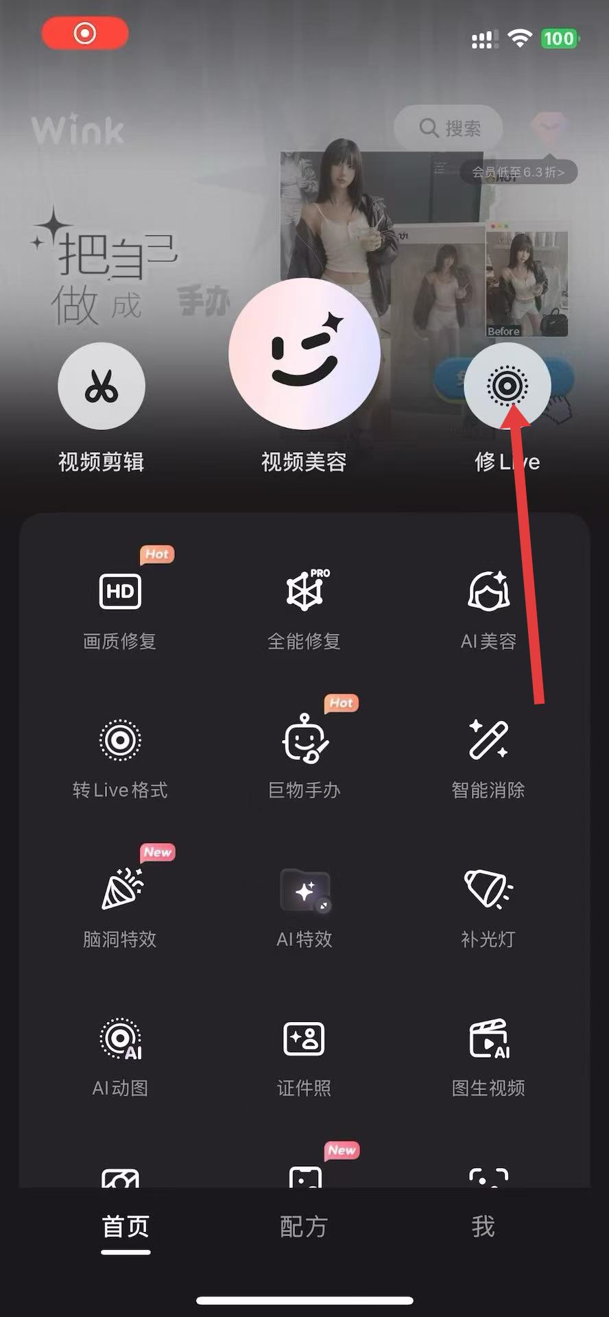 1、打開WinkApp,進入首頁界面,點擊修Live選項。