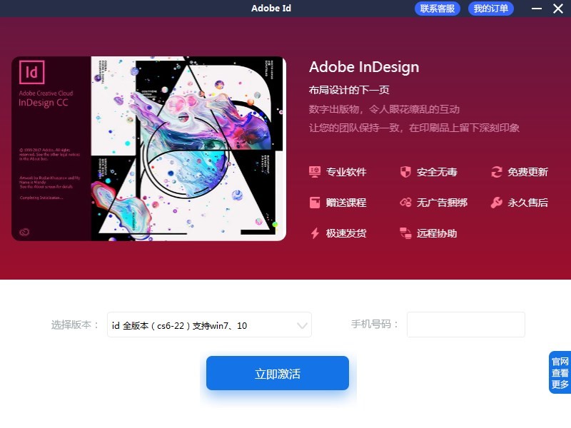 adobe Indesign助手可以幫助你一站式激活安裝adobe indesign,在線你可以選擇對應(yīng)的版本以及留下自己的手機號碼,會有專門的短信通知,你可以根據(jù)自己的需求來選擇激活安裝,而且沒有任何綁定的,你可以放心使用軟件,歡迎有需要的朋友下載使用!