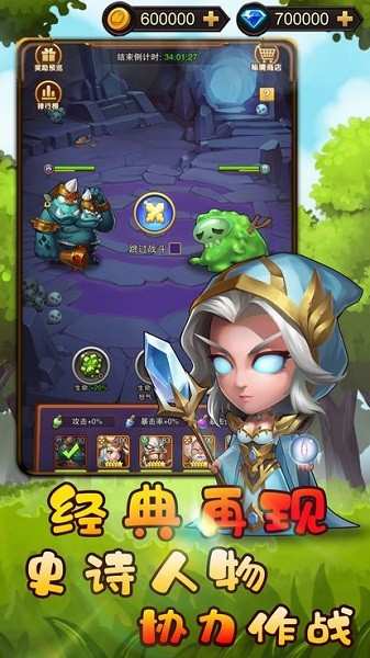 獸人來了手游是趣味十足的休閑放置類游戲,操作十分的簡單,適合所有年齡階段的玩家。畫風Q萌可愛,畫面清晰可見、流暢的游戲操作更加的讓人愛不釋手。精美的服裝、個性炫酷的技能以及上百種不同陣容的英雄,任你挑選搭配,打造專屬自己的輝煌歲月。