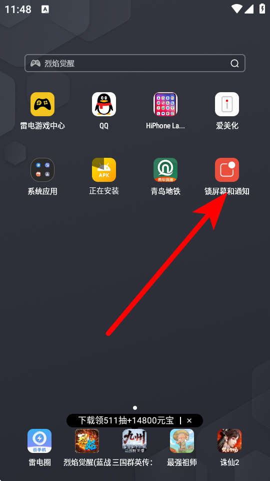 1、在手機(jī)桌面找到并,點(diǎn)擊鎖屏幕和通知應(yīng)用圖標(biāo)。