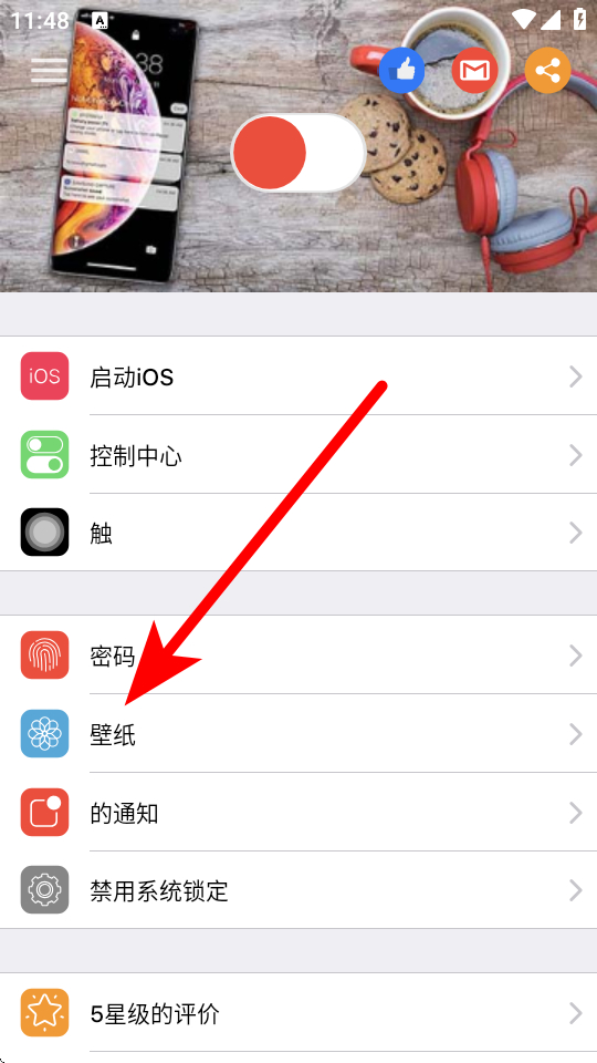 2、進(jìn)入應(yīng)用后,點(diǎn)擊壁紙選項(xiàng)。