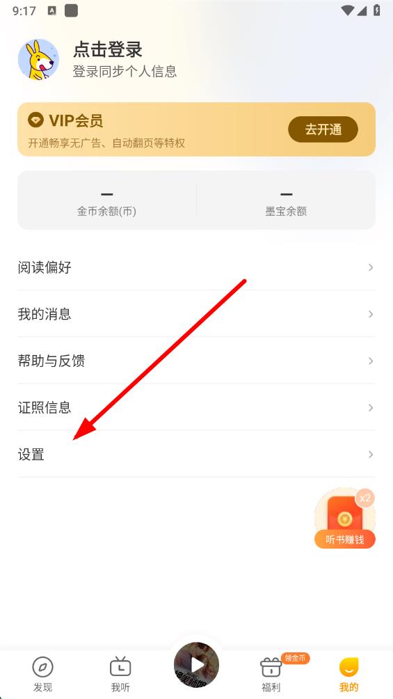 1、打開得間小說app,進入首頁后點擊底部導(dǎo)航欄中我的選項。