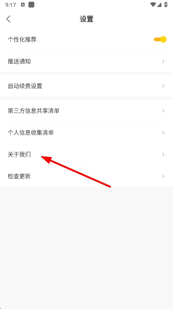 3、在設(shè)置界面里點擊關(guān)于我們選項,進入關(guān)于得間小說的信息頁面。