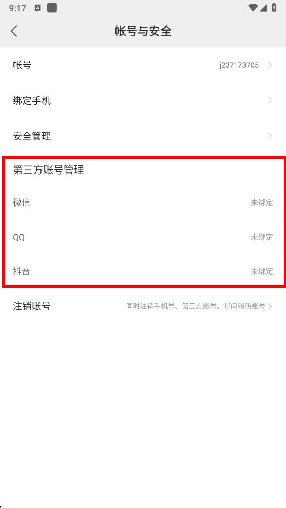 5、找到第三方賬號管理的板塊,點擊想要綁定的第三方賬號,按照提示完成授權(quán)操作即可成功綁定第三方賬號。