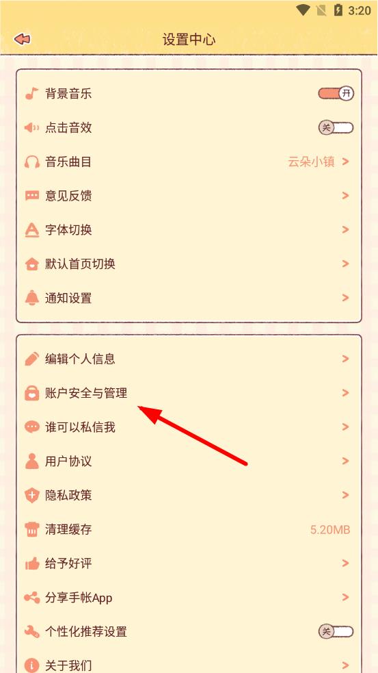 2、在設(shè)置中心頁(yè)面,找到并點(diǎn)擊賬戶安全與管理選項(xiàng),進(jìn)入賬戶管理相關(guān)界面。