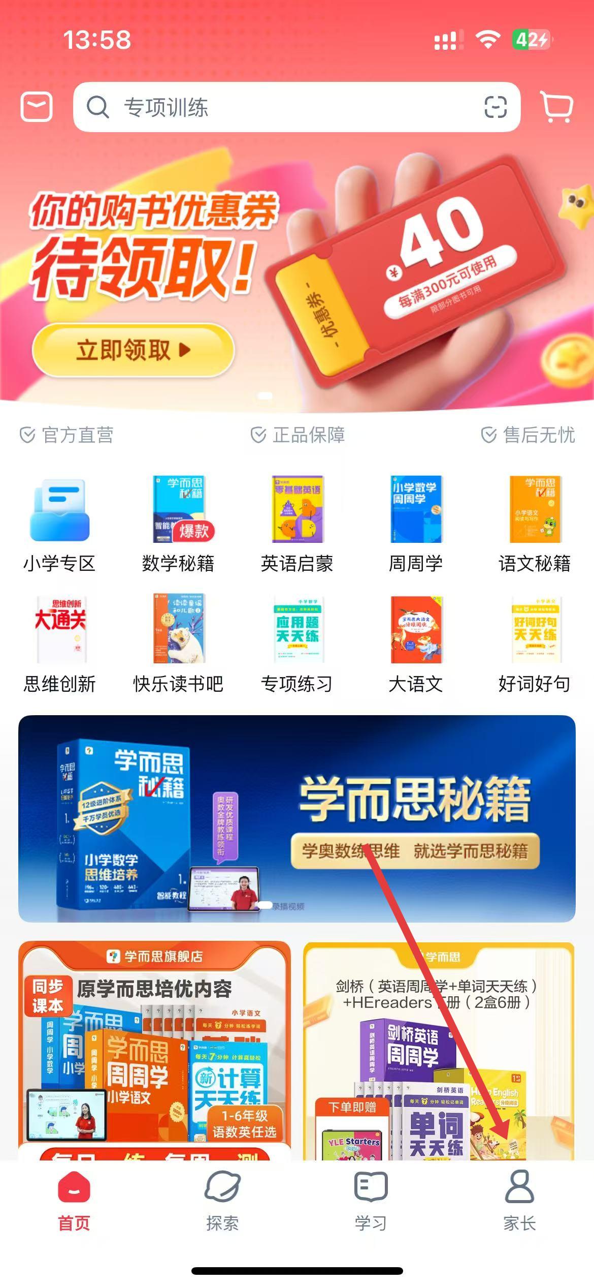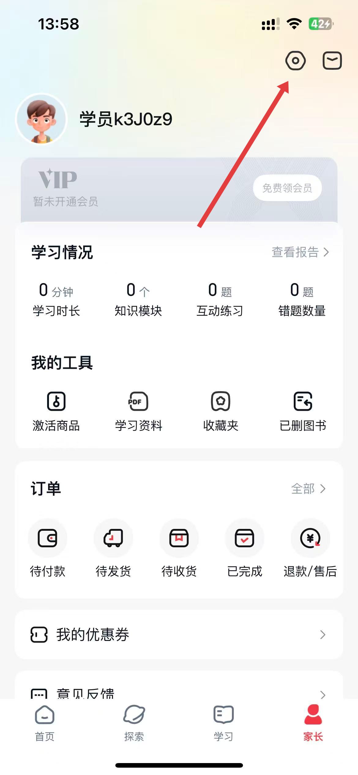 1、打開好未來圖書app,點擊底部導航欄最右側(cè)家長選項進入個人相關(guān)界面。