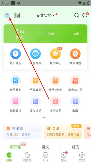 1、打開執(zhí)業(yè)護(hù)士app,點擊左上角的頭像。