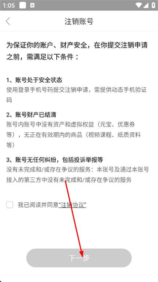 4、點擊下一步,按照后續(xù)提示完成賬號注銷操作。