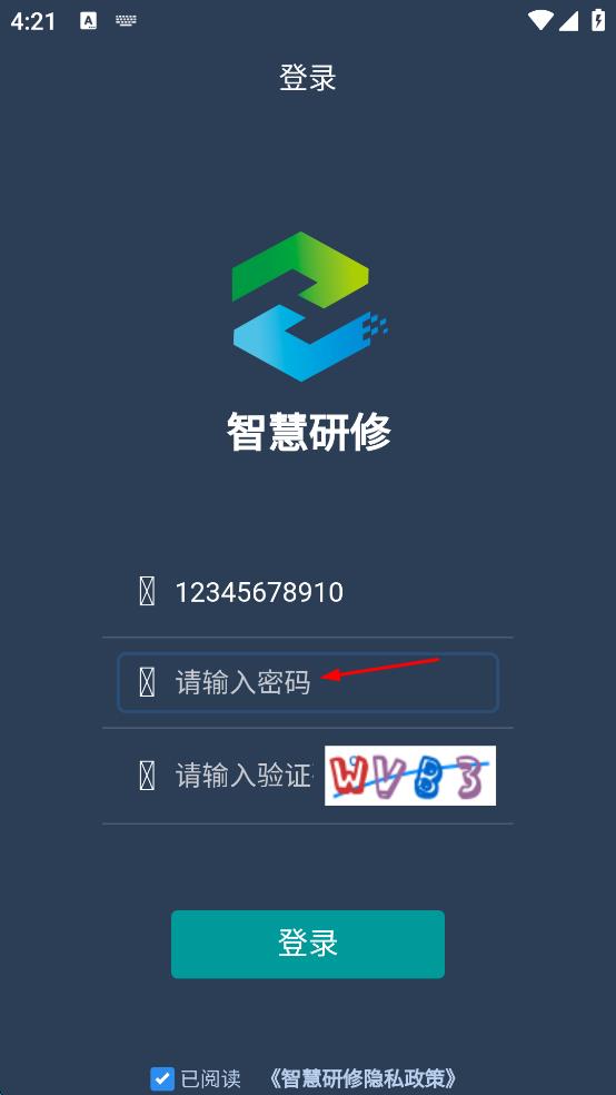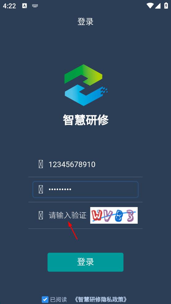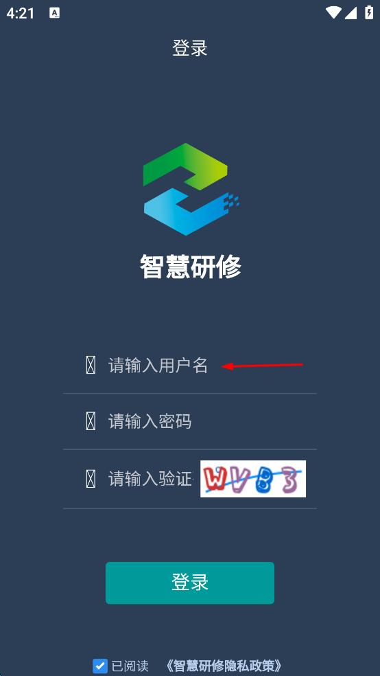 1、打開智慧研修App,進(jìn)入登錄頁面,在用戶名輸入框中輸入用戶名。