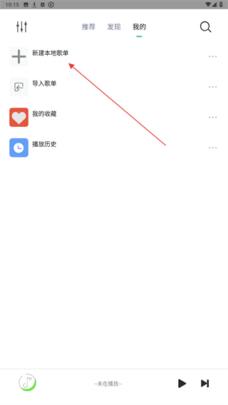 2、進(jìn)入我的頁面內(nèi),點(diǎn)擊上方新建本地歌單的按鈕。