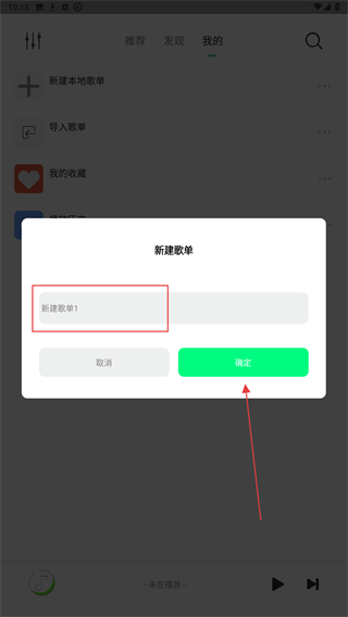 3、在輸入框內(nèi)輸入歌單名稱后,再點(diǎn)擊確定按鈕即可。