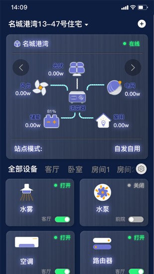 時(shí)時(shí)家軟件手機(jī)版支持在手機(jī)上添加硬件設(shè)備,包括水務(wù)水泵、空調(diào)路由器等,可以查看設(shè)備的實(shí)時(shí)運(yùn)營(yíng)狀態(tài),可以查看光伏、風(fēng)力、儲(chǔ)能以及電網(wǎng)的詳細(xì)數(shù)據(jù),可以設(shè)置故障報(bào)警提醒,歡迎感興趣的朋友下載體驗(yàn)!