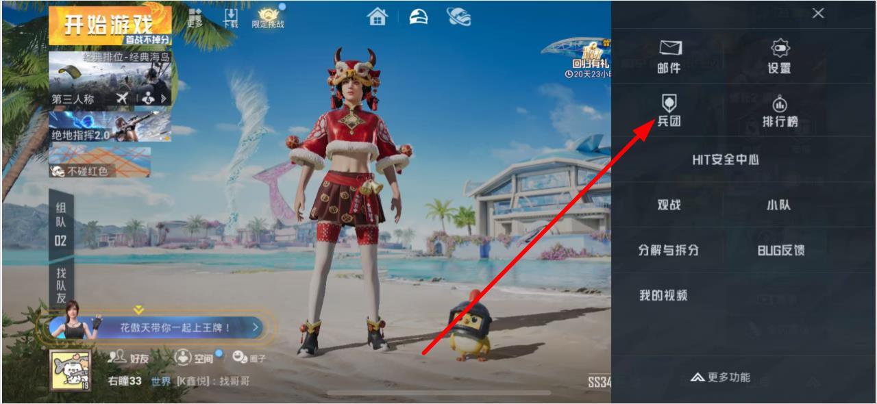 1、在游戲主界面點(diǎn)擊右上角菜單,選擇兵團(tuán)選項(xiàng)。