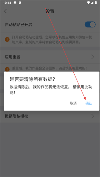 4、確認進行應用重置,點擊提示框里的確認按鈕,即可完成操作。