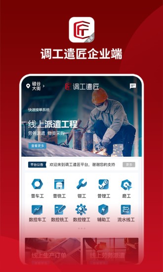 調(diào)工遣匠—可靠的靈活用工、生產(chǎn)訂單及標準件采購平臺,圍繞互聯(lián)網(wǎng)+工業(yè)平臺運營、工業(yè)制造業(yè)、技工人才、企業(yè)發(fā)展的靈活用工需求,打造了線上訂單版塊、用工版塊、商城版塊、教育版塊、勞務版塊等多項細分產(chǎn)品,幫助生產(chǎn)企業(yè)解決現(xiàn)存問題,形成完整的服務閉環(huán)。