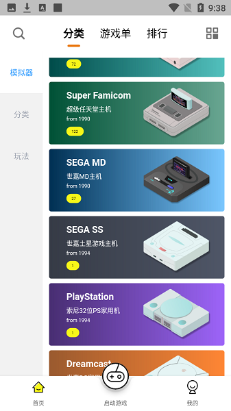 2、支持街機、GBA、PSP、FC紅白機等上萬款游戲在手機上輕松簡易使用游玩;