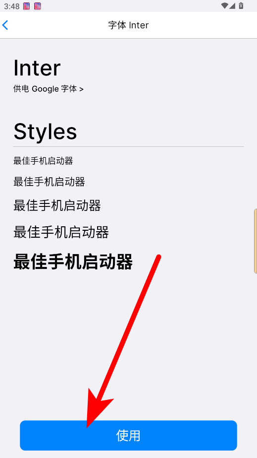 4、進(jìn)入所選字體頁面,點(diǎn)擊使用按鈕,即可應(yīng)用該字體樣式。