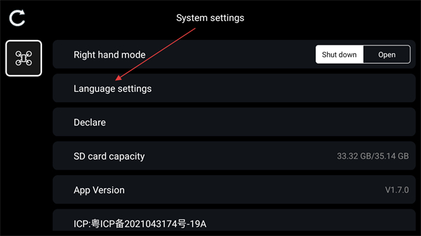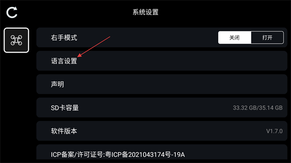 7、進(jìn)入設(shè)置界面設(shè)置右手模式和語(yǔ)言;