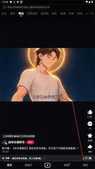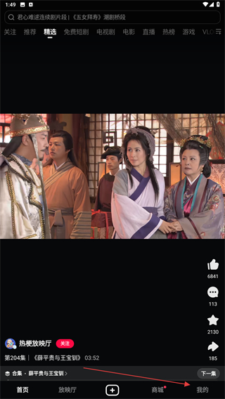 1、打開(kāi)西瓜視頻的應(yīng)用APP,在精選下點(diǎn)擊我的按鈕。