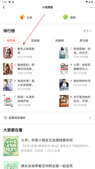3、進(jìn)入小說(shuō)頻道的頁(yè)面內(nèi),選擇并點(diǎn)擊要觀看的小說(shuō)名稱即可。