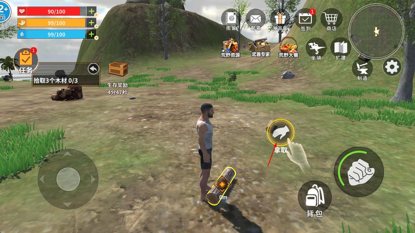 1、收集遠古地圖內(nèi)的各種生存資源維持生存。