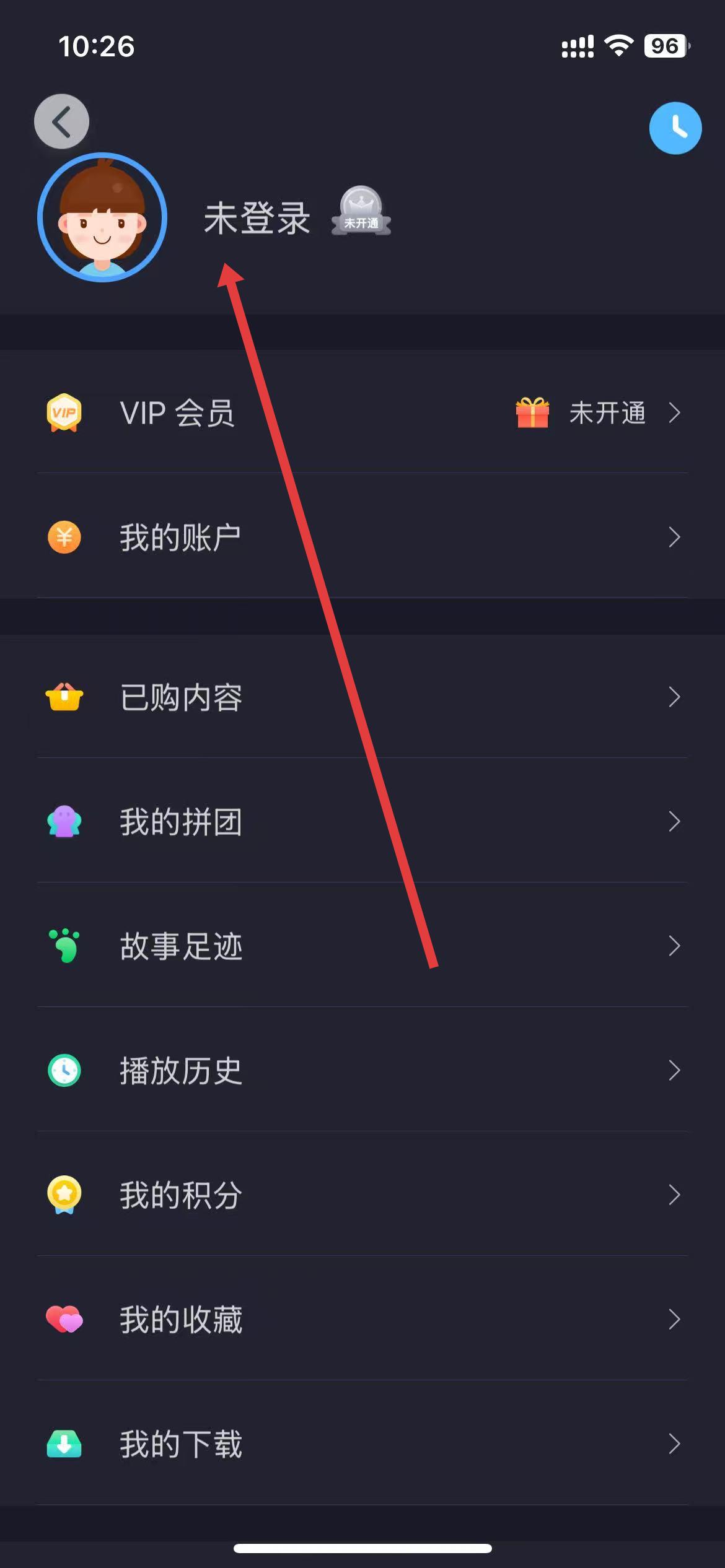 2、在進(jìn)入的頁(yè)面中,找到并點(diǎn)擊未登錄選項(xiàng)。