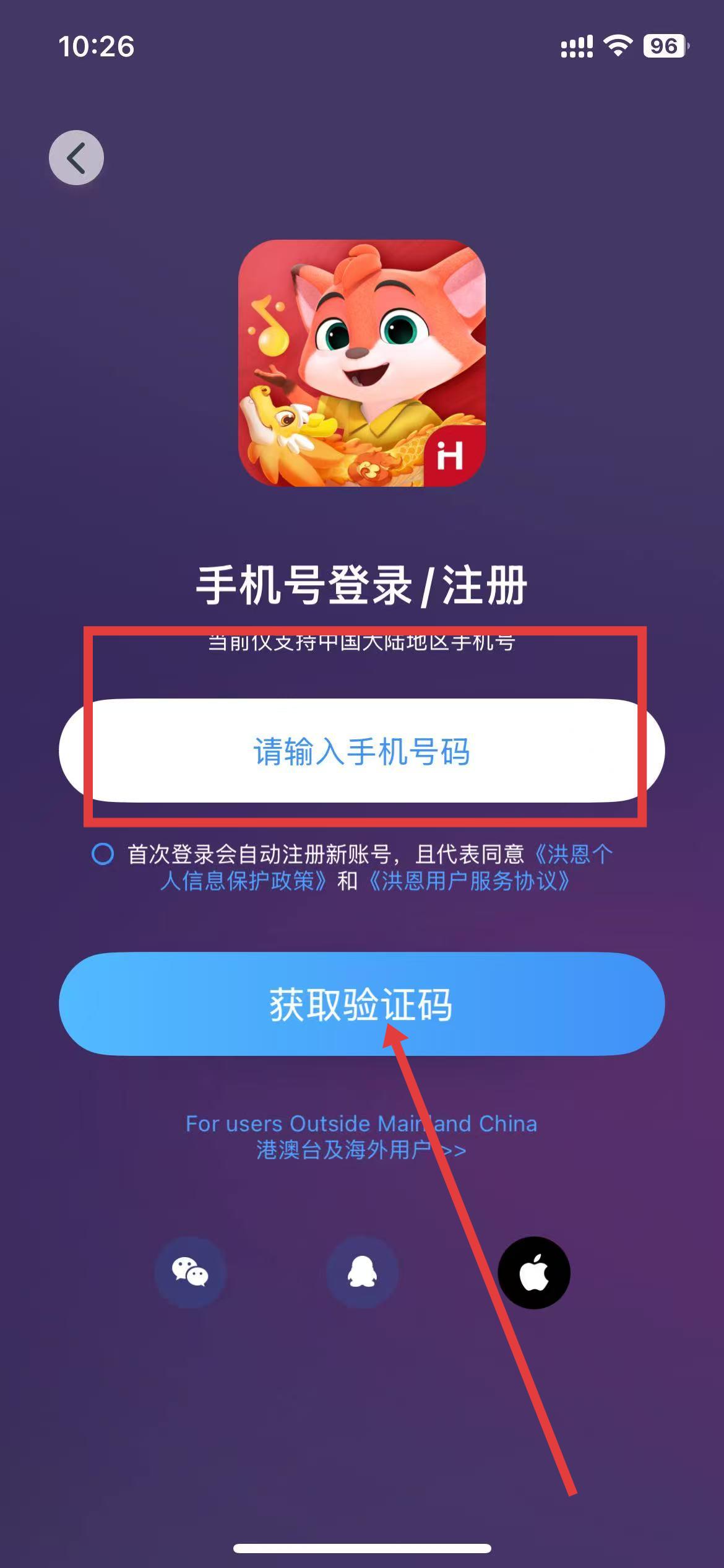3、進(jìn)入登錄頁(yè)面,輸入手機(jī)號(hào)碼,點(diǎn)擊獲取驗(yàn)證碼。