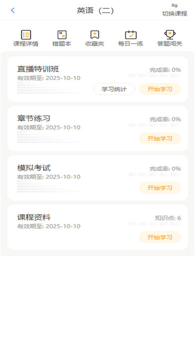 卡片式交互,左右滑動(dòng)切換不同學(xué)習(xí)班型