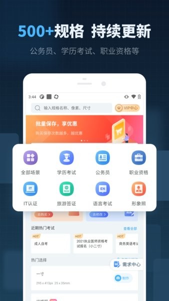 - 證件照隨拍:本地選擇或拍攝一張正面照片,支持多種證件照尺寸