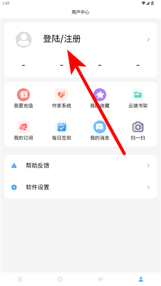 2、在用戶中心頁面點(diǎn)擊登陸/注冊,進(jìn)入用戶登陸頁面。