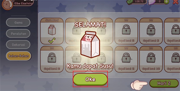 2、首先可以進(jìn)行材料的購買,如牛奶,點擊牛奶下方的綠色小按鈕即可完成購買;