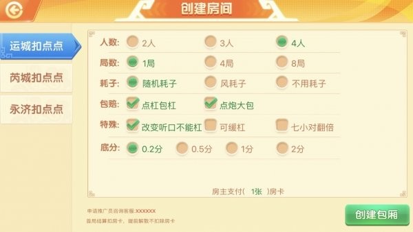 2、莊閑倍數(shù):如果莊家胡則所有閑家需給予莊家倍率為N倍,若閑家胡,則其他2個閑家給予1倍,莊家給予該胡的閑家N倍(N的數(shù)值由連莊次數(shù)決定,一連莊為2倍,二連莊為4倍,三連莊三為8倍,8倍封頂)