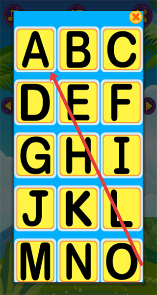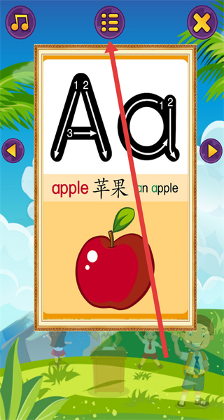 3、在字母認知卡界面,點擊上方的列表按鈕,可查看字母列表。