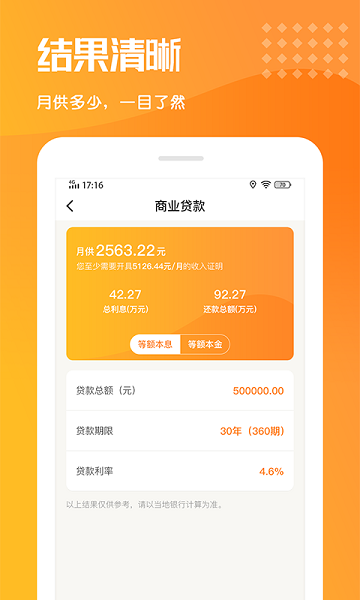 支持公積金貸款計(jì)算、商業(yè)貸款計(jì)算,組合貸款計(jì)算等多種貸款方式,同時(shí)可在等額本金和等額本息還款模式中隨意切換,智能計(jì)算,合理貸款,幫助你定制更有效的還款計(jì)劃。