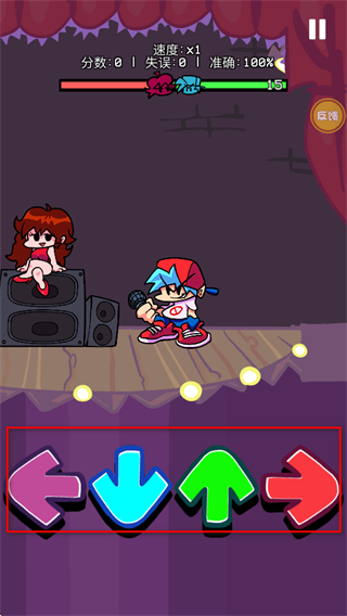 4、在游戲過程中,根據(jù)屏幕中出現(xiàn)的音符,點擊對應(yīng)的上下左右方向鍵,準(zhǔn)確操作以獲得分?jǐn)?shù),完成音樂節(jié)奏挑戰(zhàn)。
