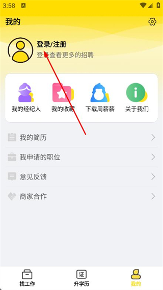 2、在我的頁面,找到并點(diǎn)擊上方登錄/注冊選項(xiàng)。
