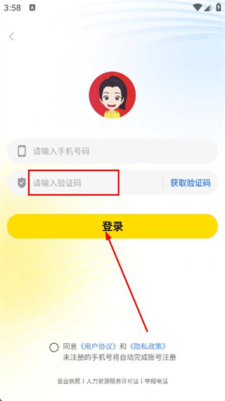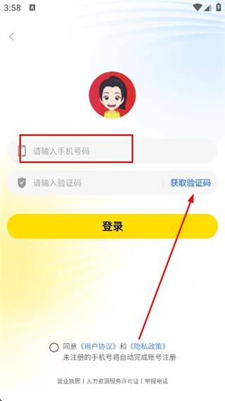 3、在登錄頁面,輸入手機(jī)號碼,點(diǎn)擊獲取驗(yàn)證碼。