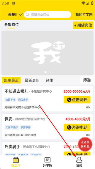 1、打開我的打工網(wǎng),點(diǎn)擊底部導(dǎo)航欄我的選項(xiàng)。