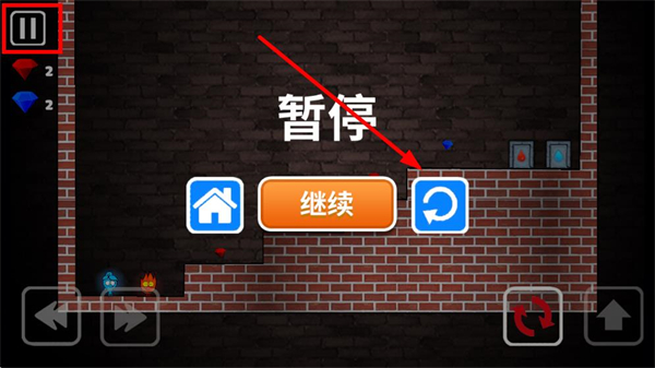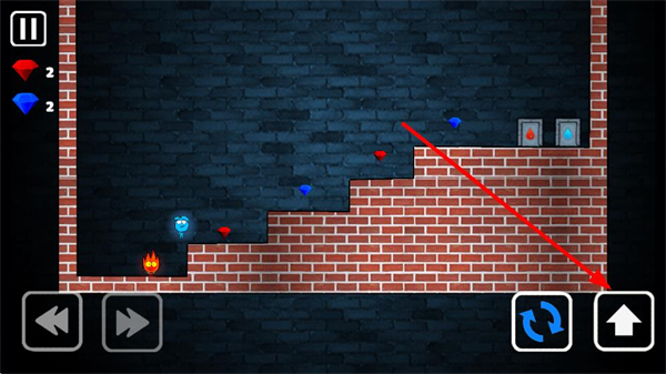 1、通過左側(cè)左右方向按鈕操控冰火角色移動,可分別控制冰人或火人向左右移動。