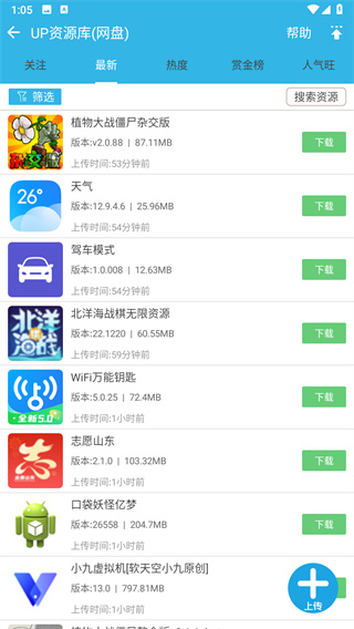 4、在up資源庫可以直接下載最新的玩家上傳資源,都是一些很好用的APP