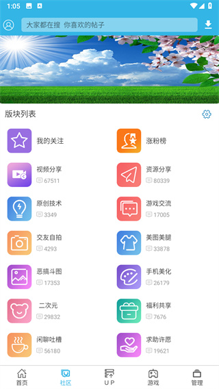 5、另外,在社區(qū)中可以加入板塊進行互動,包含了我的關(guān)注、資源分享、原創(chuàng)技術(shù)、游戲交流等社區(qū)