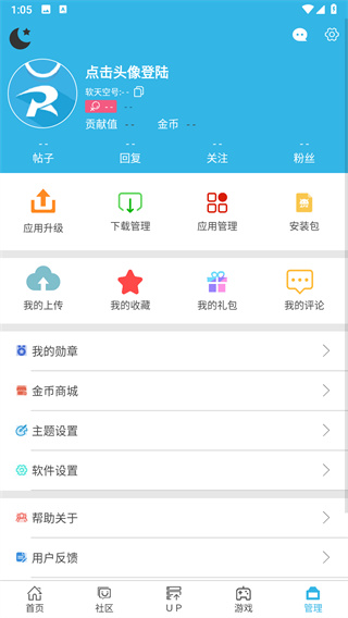 6、通過管理頻道,可以為自己的APP升級、管理下載、管理應(yīng)用、管理安裝包,也可以查看自己上傳的手游