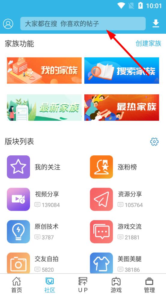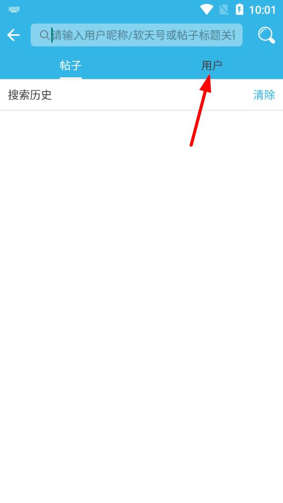 2、在社區(qū)界面頂部的搜索欄中,點擊輸入框并輸入想要搜索的用戶昵稱、軟天號等關(guān)鍵詞。