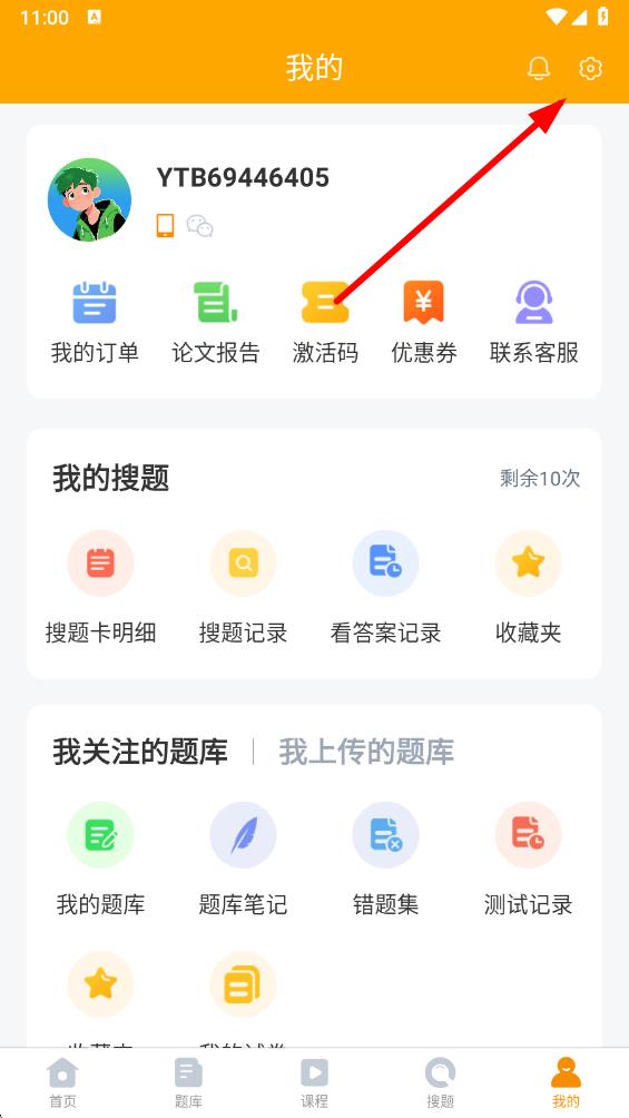 2、在我的頁面右上角,點擊設(shè)置圖標,進入設(shè)置界面。